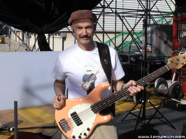 Its a long story but our bassplayer, LeMon got contact one year ago in Munich with the emperor of low notes, Tony Levin, who is best known as the bassplayer in King Crimson, and for Peter Gabriel! When PG and and his band had a big, and extraordinary concert here, in Budapest last month, LeMon sent a T-Shirt for Tony with his South Park cartoon, which was created by LeMon. Now, Tony was so precious and made a picture for his diary wearing the T-Shirt during a PG soundcheck!